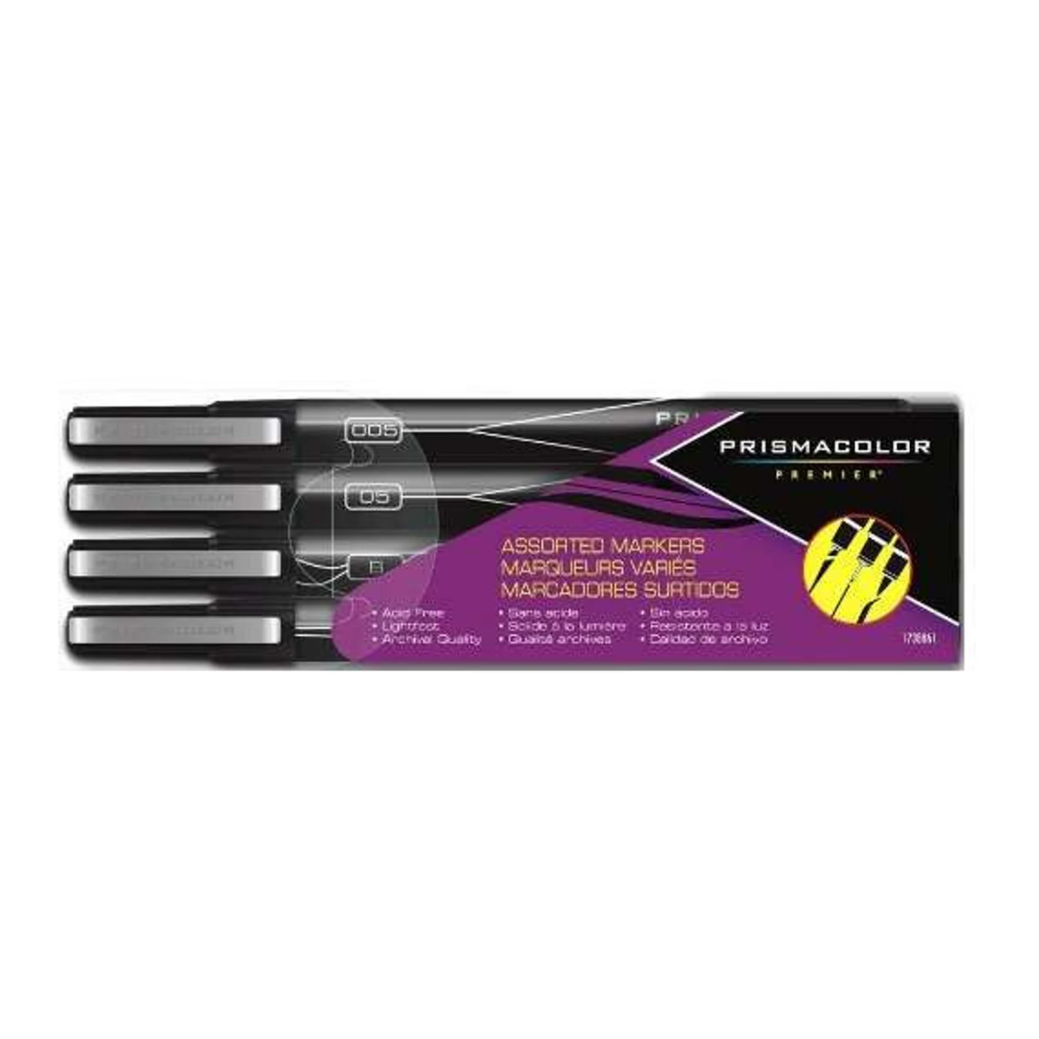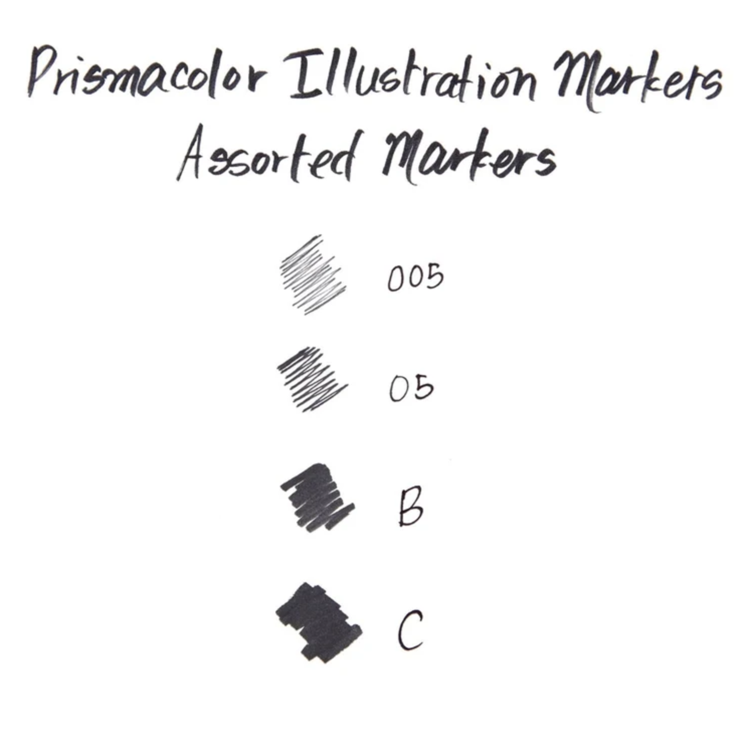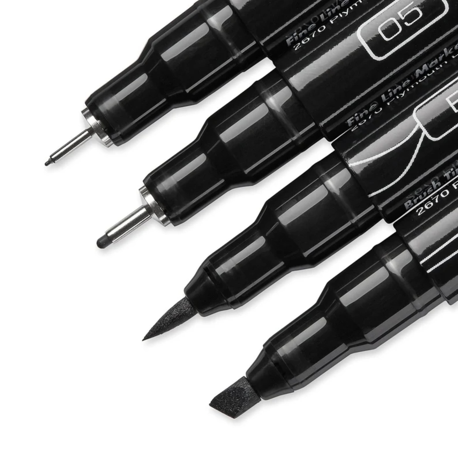 4 marcadores Prismacolor Premier Black Color Pen; puntas finas (005, 05), punta de pincel y punta biselada. Dibujo, difuminado, sombreado y renderizado.