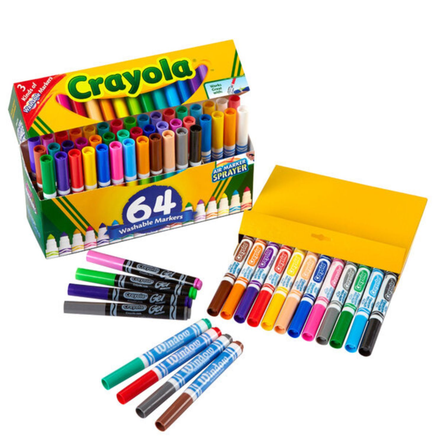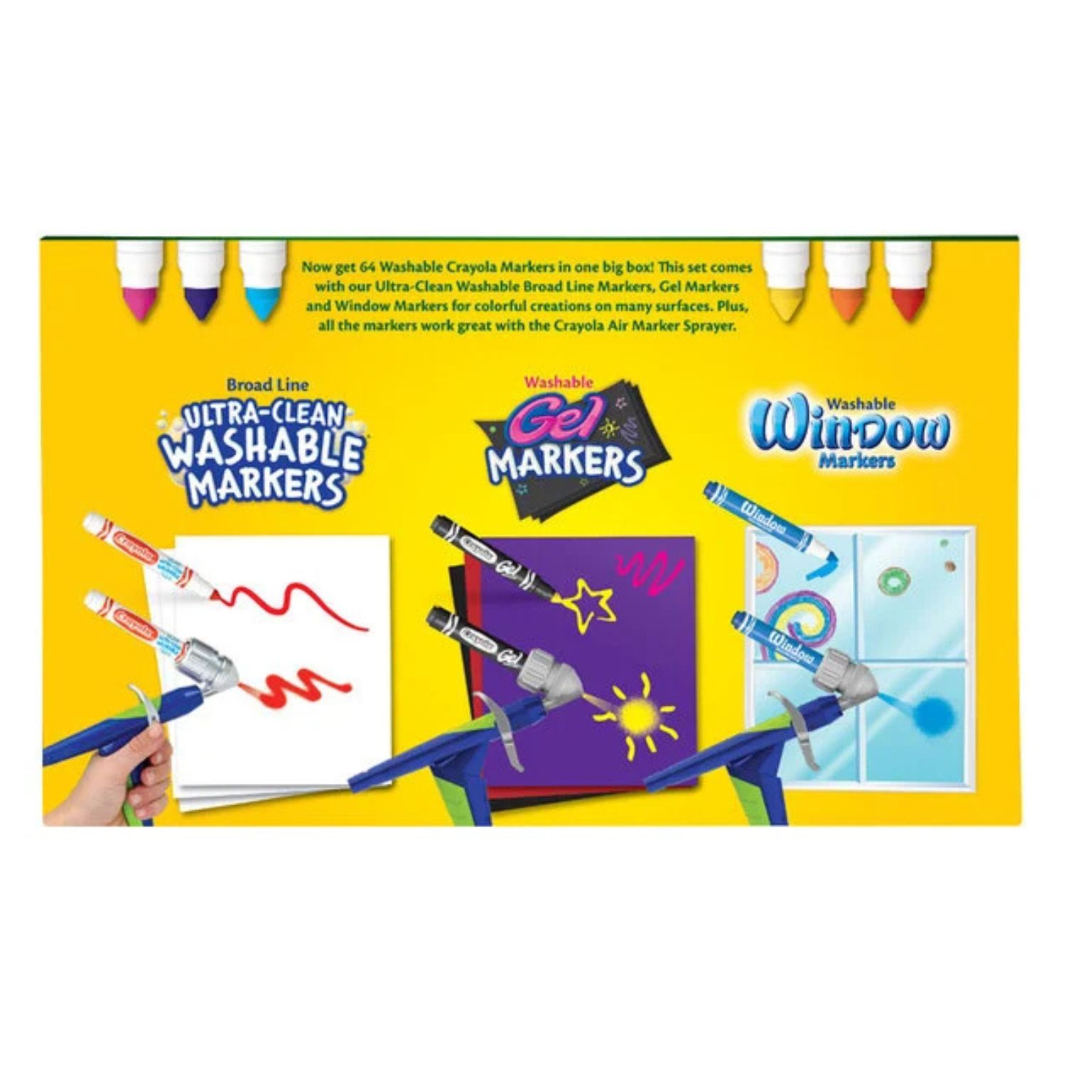 El set de marcadores lavables Crayola de colores surtidos por 64 unidades ofrece una amplia variedad de colores y efectos para actividades de dibujo, coloreado y manualidades.